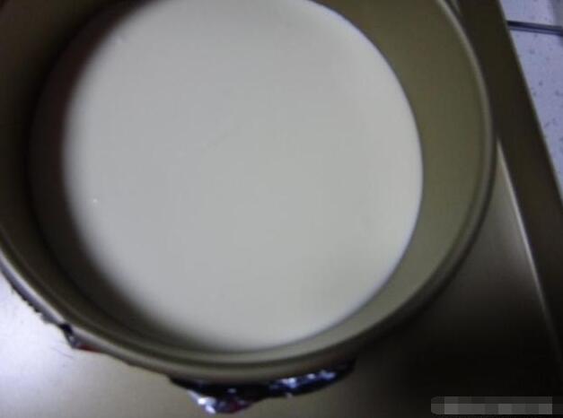 8、6寸活底蛋糕模外面包好锡纸,底层先铺一般的沾了咖啡甜酒的手指饼干,倒入一半芝士糊,再把剩余的饼干放入,倒入剩余的芝士糊,轻震两下,使表面光滑