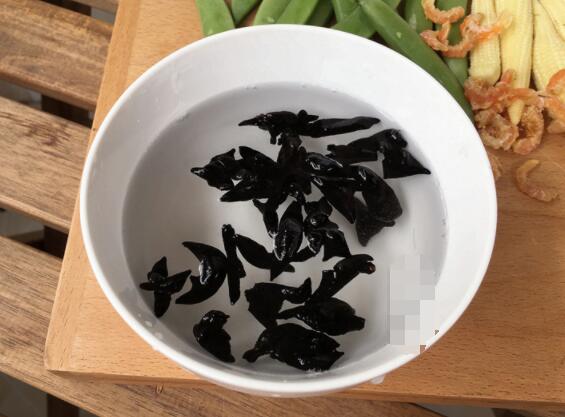 食材:甜豆、玉米笋、黑木耳、钱葱、虾米(海米)