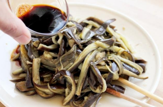 趁热将香料油浇到茄子上,这道菜就完成了。