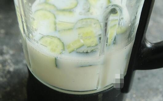 【材料】:青瓜1根、燕麦20克、奶粉25克、蜂蜜1汤匙