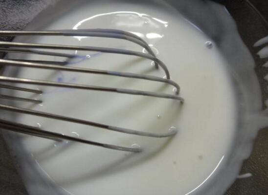 1、奶粉、玉米淀粉、糖、淡奶油、牛奶放入小奶锅搅匀煮开,关火放凉备用