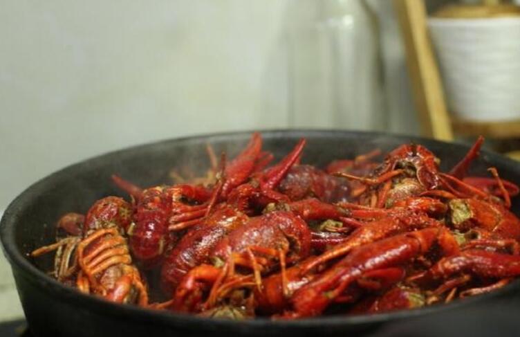 待油温烧至7—8成热,倒入洗净的小龙虾
