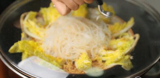 7. 每瓣菜间填上金蒜,中心铺上粉丝。