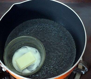 12、吉利丁片倒去多余的水,然后隔水融化。